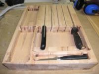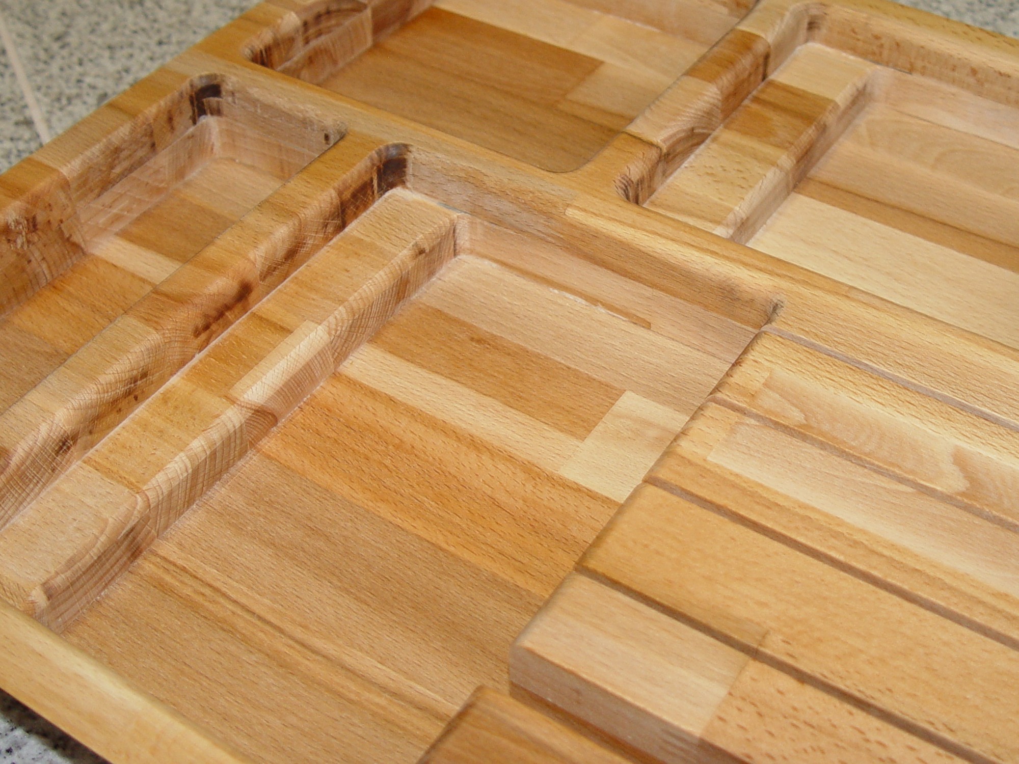| Breite 429mm, Tiefe 468mm, die Grundplatte ist 18mm dick, und die Fächer wurden aus einer 40mm Holzplatte gefräst. | ||||